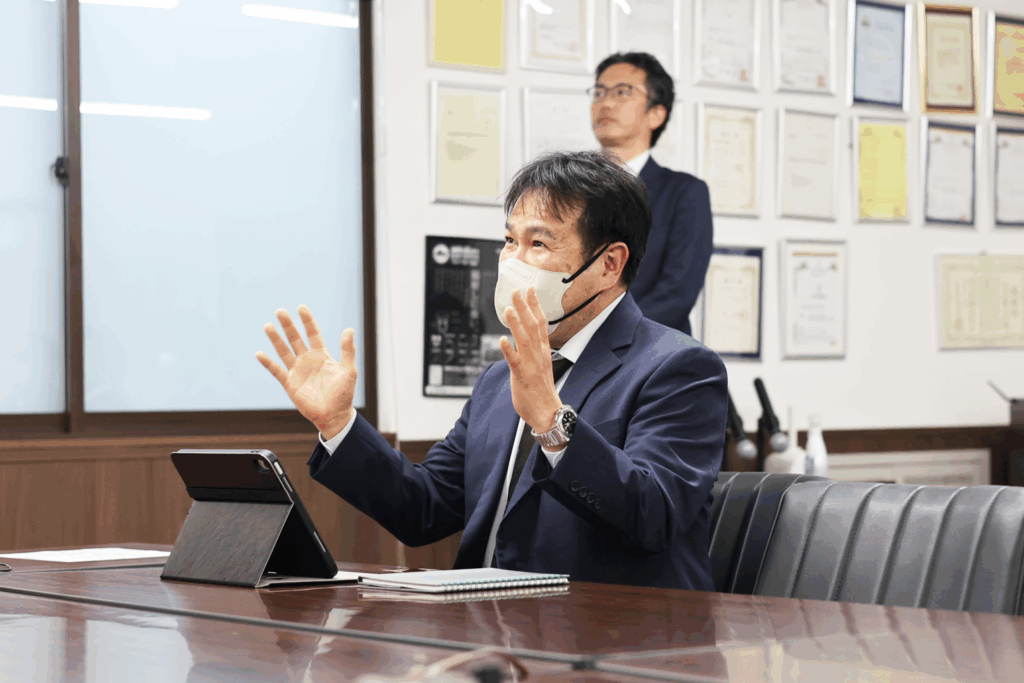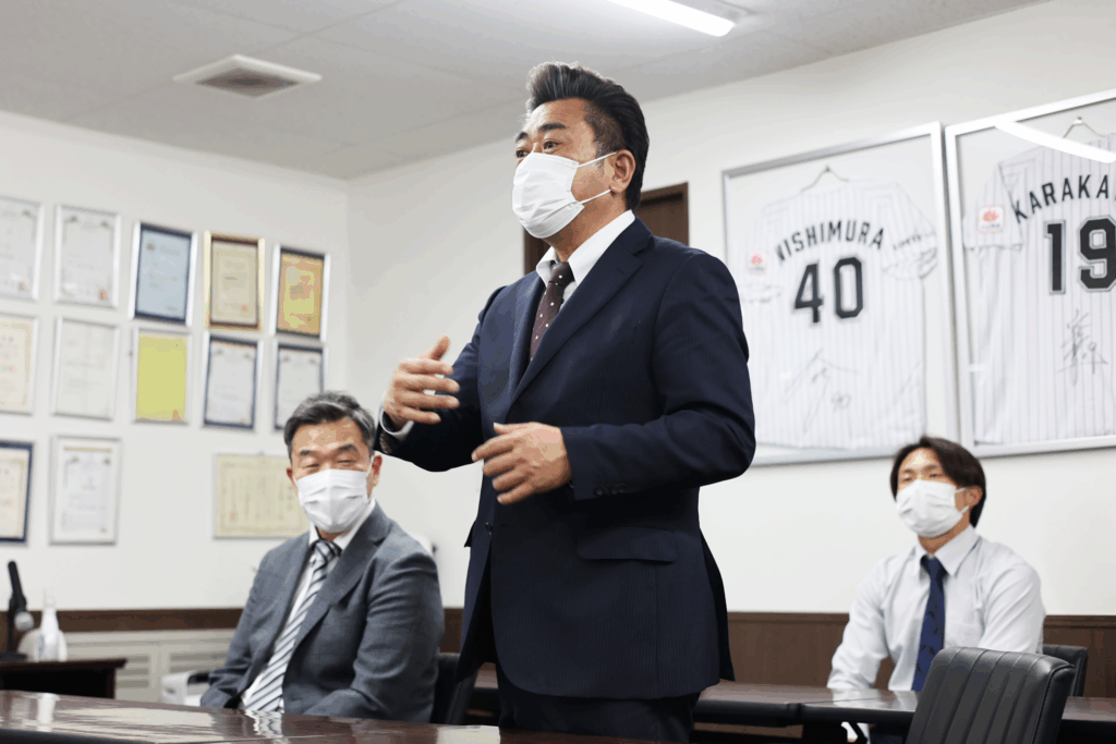 先輩社員と各部署長による挨拶の後に、代表取締役からはお祝いと激励の言葉が送られました。
